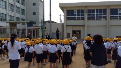 校長先生から帽子の役割と、二十四節気「芒種」についてのお話、漢字でGO!の表彰がありました。