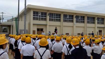 看護当番の先生からは、「遊びを工夫しよう」という6月の生活目標と、集団登校についての話がありました。