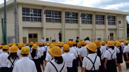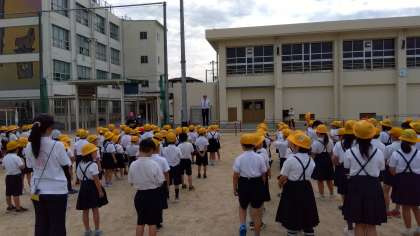 看護当番の先生からは、登下校で安全のために帽子をかぶることと、安全のために廊下は歩くことの話がありました。