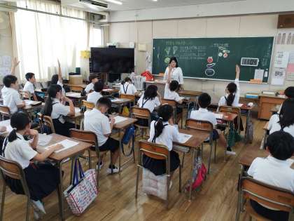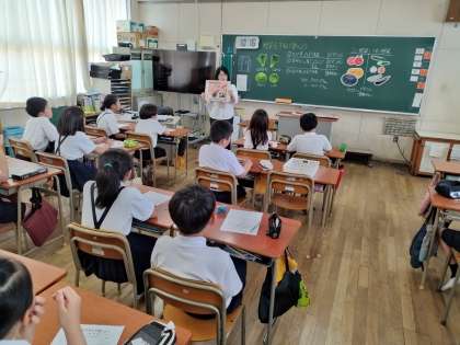 栄養教諭の先生と、野菜の栄養と働きについて学習しました。