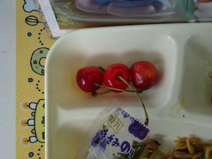 今日の給食は、1/2パン、牛乳、やきそば、オクラの中華和え、そして、さくらんぼでした。給食では、四季折々の食材が使われます。子どもたちには、給食をおいしく残さず食べるとともに、旬の食材を食べながら四季を感じてほしいものです。