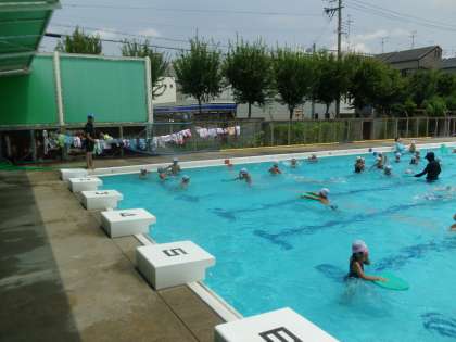 午前中は、図書館開放とプール開放があり、多くの子どもが参加していました。また、早朝にはラジオ体操が始まりました。