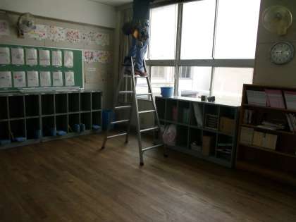 いよいよ本格的なエアコンの工事が始まりました。廊下には、エアコンの本体や部品、工具が入ってきました。8月末までにエアコンが設置されます。