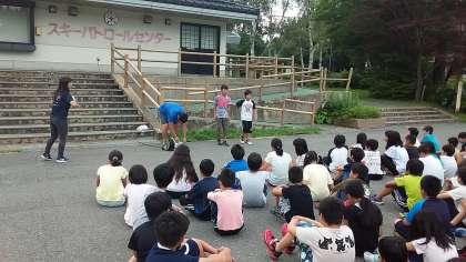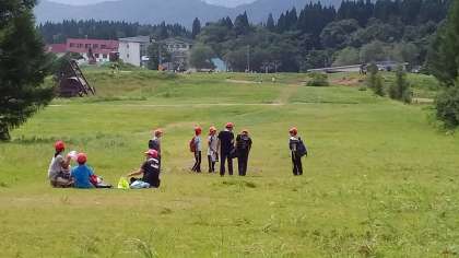 3日目の朝を迎えました。朝の集い、朝食を終え、午前中の活動は「ネイチャーゲーム」です。班ごとに分かれてポイントを回ります。