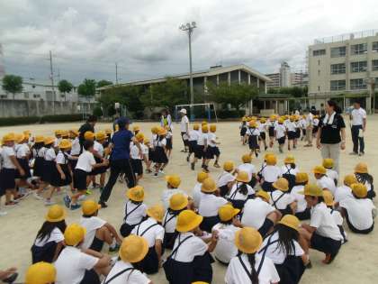 今回は、地震および津波を想定した訓練をしました。自ら考えて行動できる力をつけるために避難訓練の実施を伝えた上で、いつするかを伝えずに行いました。休み時間に行いましたが、初めは戸惑っていた子どもたちも訓練の大切さから真剣に取り組んでいました。訓練の最後に校長先生の話がありました。話の途中では、第5回大阪880万人訓練の放送も流れたので、子どもたちは、より防災意識が高まったと思います。