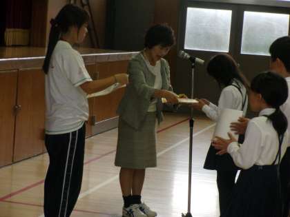 児童朝会の時に校長先生から後期児童会役員の子どもたちに認証状を渡しました。前期児童会役員の子どもたちは、わくわく集会や運動会などいろいろな場面で活躍してくれました。後期児童会役員の子どもたちもどんどん活躍してほしいと思います。