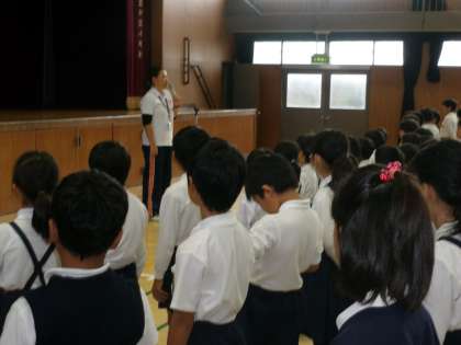 認証式後、看護当番の先生より、今月の生活目標「ていねいな言葉づかいをしよう」について話がありました。