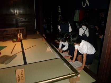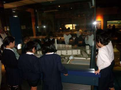 南森町から天神橋筋6丁目まで商店街を歩きました。前回見学に行ったコンビニエンスストアやスーパーマーケットと比べながら歩きました。占い屋さんや特定の地域の特産品を売るお店などなかなか普段見ない商店を見たり、うどん屋や食べ物屋など同じ種類のお店もたくさんあることにも気づいていました。くらしの今昔館では、江戸時代の「大坂」の町屋を体感するとともに、江戸から昭和30年代までの街並みの移り変わりをジオラマを見ながら学習することができました。また、ホールでは、昔の道具の名前や使い方を学び、今の生活がとても便利であることを感じることもできました。