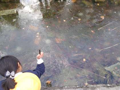 14日、15日の寒波の影響で、川辺池に氷が張りました。子どもたちは、池の周りに集まり、つついたり触ったりしてきました。寒さが続き、風邪などが流行る時期です。手洗い・うがいをしっかりして元気に毎日過ごしてほしいと思います。