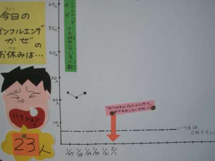 毎日、かぜやインフルエンザで欠席した人数を調査しています。