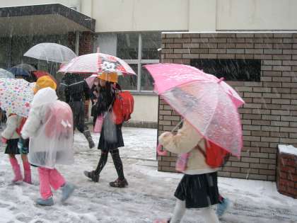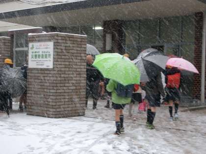 雪がいっぱいの中、登校してきました
