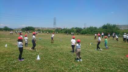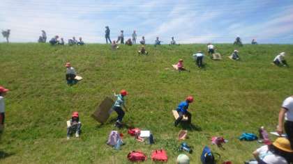1班から48班に分かれて、大和川河川敷の広場に行き坂すべり