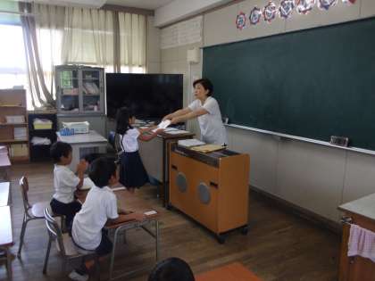 1年生は初めての「あゆみ」なので、少し緊張しながらもらってい
