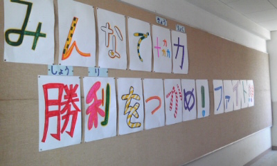 運動会のめあてが決まりました。 「みんなで協力 勝利をつかめ! ファイト!」