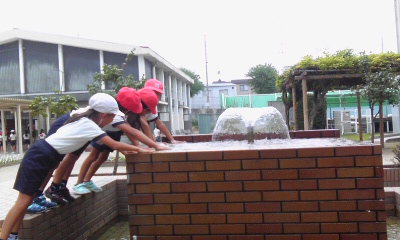 朝晩涼しくなりましたが、昼間は蒸し暑さが残ります。噴水の水が気持ちいいですね。