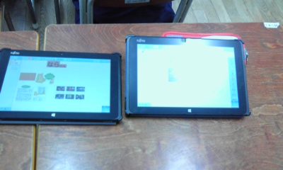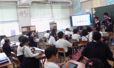 都道府県の名物や人口などを調べて、タブレットでそれぞれ作成し、発表しました。