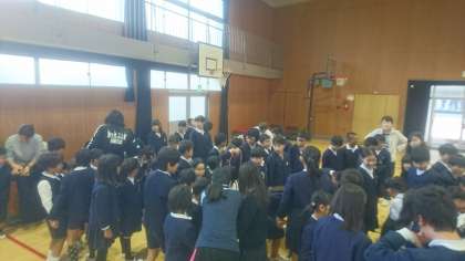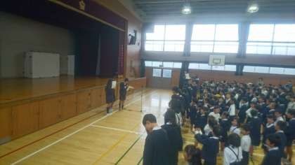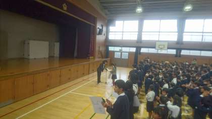 今日は、朝会で表彰がありました。その後、集会委員会の活動で縦割班