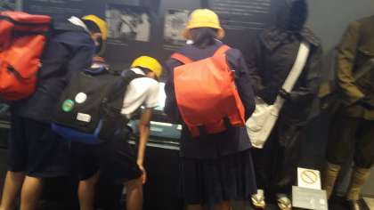今日は、6年生の社会見学があり、ピース大阪と阿倍野防災センターへ