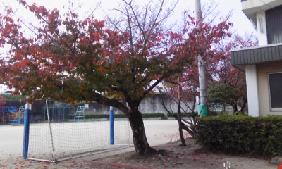 講堂横の木の葉も赤く色づいています。秋の深まりを感じます。