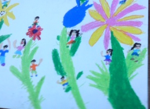 きれいなお花で、遊んでいる子どもたちが書かれています。