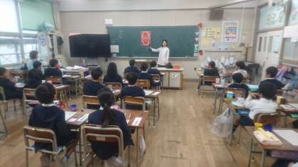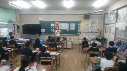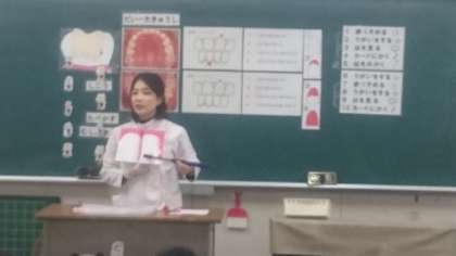 2年生の歯みがき指導のために、歯科衛生士の木戸先生が来てください