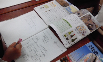 大阪府柏原市のぶどう農家について学習していました。学習後の感想には、「ブドウつくりは、思っていたより大変なことがわかった。」「ブドウの種類がたくさんあることがわかったので、食べ比べてみたい。」などと書かれていました。