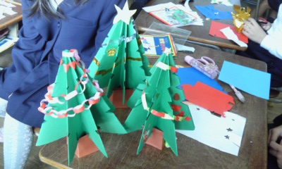 クリスマスツリーを作っていました。きれいに飾り付けもできています。
