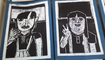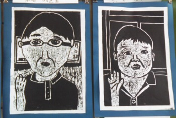 版画の完成作品です。しっかり、彫刻刀でほれています。