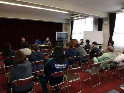 2月7日(水)平野警察署の防犯係の方を講師に、全教職員で行いました。本校の防犯計画やいろいろな場面での対応についてご指導をいただきました。さすまたの使い方についてや、警察が到着するには、5分ほどかかるので、その間の対応として、不審者に対しては複数対応で行うことや無理をしないことなども教えていただきました。