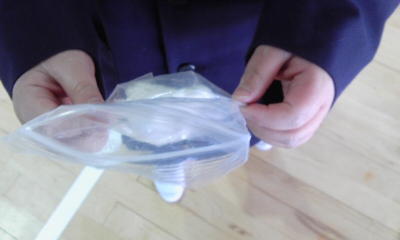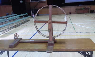 糸に紡ぐ「ぼう車」と呼ばれるものです。子どもたちは、自分で紡いだ糸と綿を持ち帰りました。