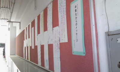 「卒業生からのメッセージ」が掲示されています。在校生に伝えたいことが書かれています。