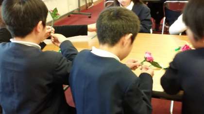 地域の方々に作り方を丁寧に教えてもらい、卒業生全員の胸花が無事に