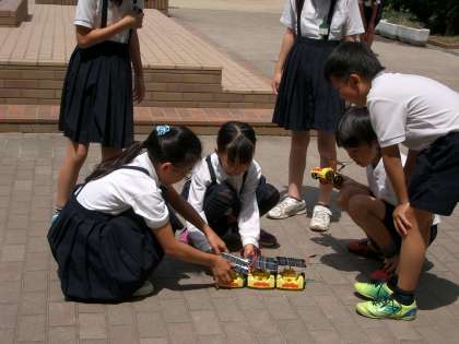 光電池のはたらきでミニソーラーカ-を走らせよう