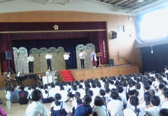 ローゼンビートの音楽会が、川辺小学校にやってきました。音楽劇「シンデレラ」で、楽器の紹介や音色を楽しみました。みんなでリズムを取ったりして、とてもいい時間を過ごすことができました!