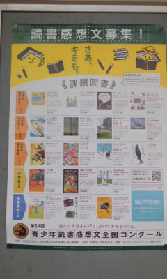 夏休みの読書感想文の課題図書の一覧が、図書室前にはり出されています。夏休みには、たくさんの本を読んでほしいですね。