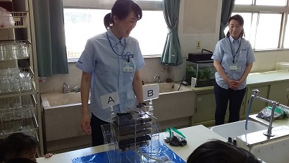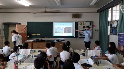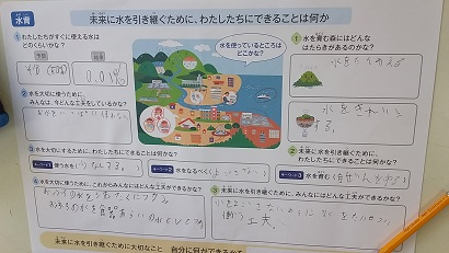 サントリーから3人の講師の方が来て、水の大切さ、森林の大切さを教えていただきました。