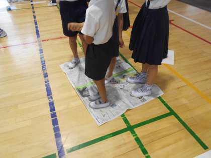 じゃんけんに負けると乗る場所が小さくなるので、みんなが乗れるように