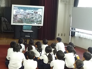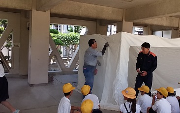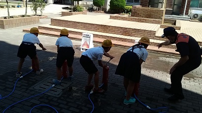 今日は、平野区役所の防災担当の方と消防署の方が来ていただき、4年生が防災についての学習を行いました。消火器の使い方や、煙体験、消防車見学、津波についての映像などで、災害の恐ろしさを知るとともに、自分たち一人一人が何ができるかを学ぶことができました。