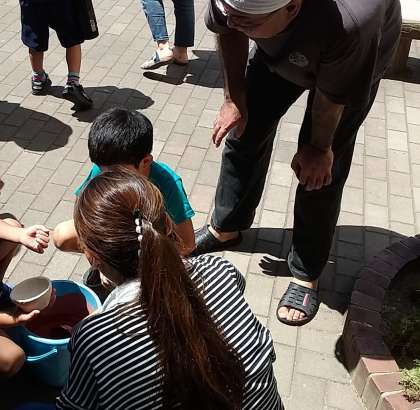 12時前より7月に作った作品に釉を付けました。これから中庭にある窯で焼いてもらい、10月末の作品展で展示する予定です。是非とも足を運んでいただいて、出来栄えをご覧ください。作品展では、各学年の作品も展示いたします。