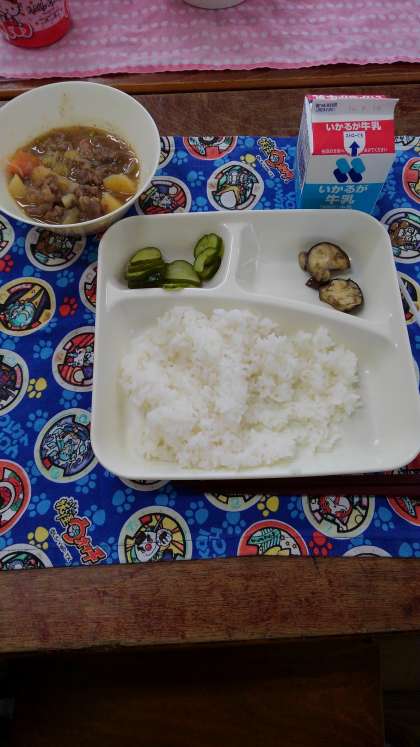 肉じゃが、焼きナスの味噌だれかけ、あっさりきゅうりでした。とてもおいしかったです。