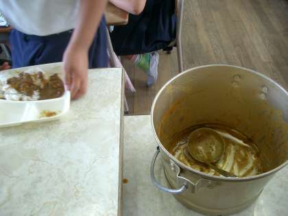カレーもごはんも完食で食缶が空っぽになりました。