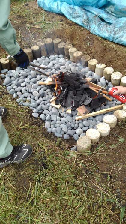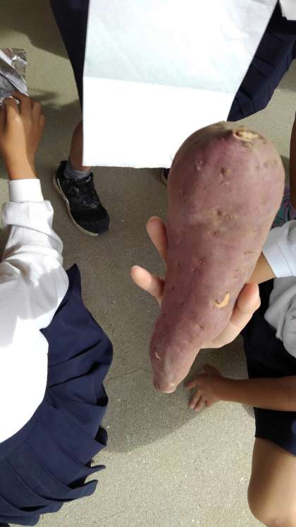 地域の方とさつまいもを焼き芋にします。管理作業員さんが今年は石焼きにしてくれました。