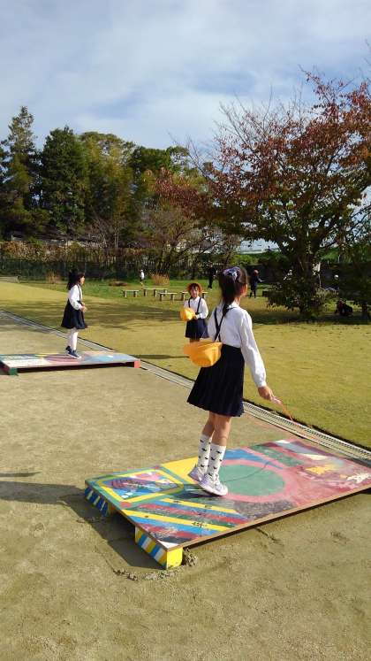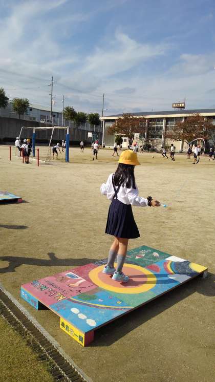 卒業生が作ってくれたジヤンピングボードでなわとびの練習をしています。