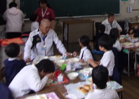 今日は、登校見守り隊、川辺シルバークラブ、ハッピー会の皆さんと給食を食べました。初めは、緊張していた子どもたちも、時間がたつにつれ、緊張もほぐれ、楽しい時間を一緒に過ごすことができました。お忙しい中お集まりいただき、ありがとうございました。