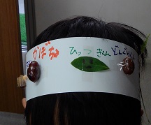 木の葉やドングリを使って、かんむりを作りました。
