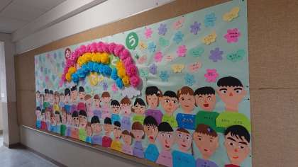 本日、1年生が作った卒業おめでとうの作品を廊下に掲示しました。