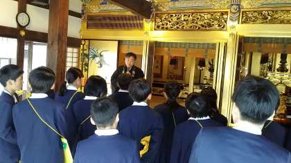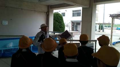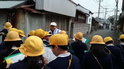 昨日に引き続き、登校見守り隊の辻岡さんに川辺の昔の様子をフィールドワークをしながら、教えていただきました。また、川辺小学校や近隣の学校のルーツとなる専龍寺にも訪れ、昔の教科書やノート等を見せていただきました。