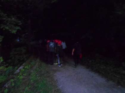 19:15ごろから、ナイトハイクに出かけました。宿舎のまわりの森の中を体験しました。