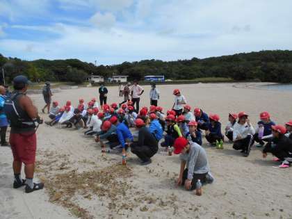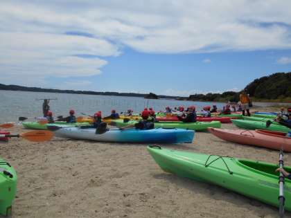 昼食のあと、海岸に移動しました。いよいよ シーカヤックが始まります。快晴ですが、少し風があり、さわやかです。