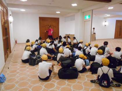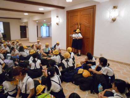 9:00に閉舎式を行いました。ホテルのみんさんにお礼を言って、スペイン村に向かいます。